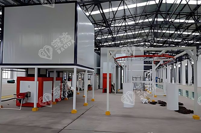 粉末喷涂设备主要包括:前处理设备、喷粉系统、固化系统、烘干系统、热源系统、电控系统、悬挂输送链等。适用于工件表面的喷粉处理,采用大选风喷粉系统,确保粉回收率高达99%??焖倩簧?0到15分钟,根据客户需求设计制造和制造。