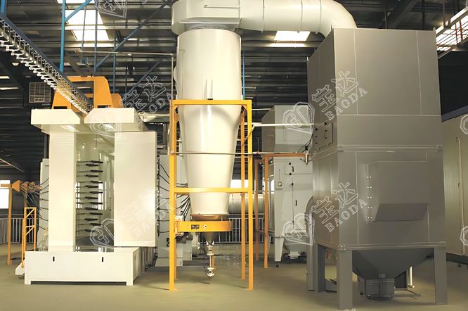 2. 前处理系统在线前处理,做到即处理即喷涂;瀑布均匀冲淋工件,型材表面处理均匀度高。