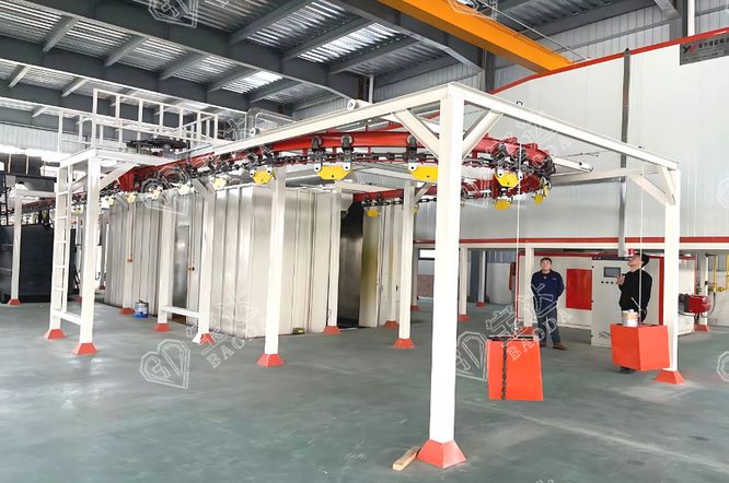 粉末喷涂设备主要包括:前处理设备、喷粉系统、固化系统、烘干系统、热源系统、电控系统、悬挂输送链等。适用于工件表面的喷粉处理,采用大选风喷粉系统,确保粉回收率高达99%。快速换色10到15分钟,根据客户需求设计制造和制造。