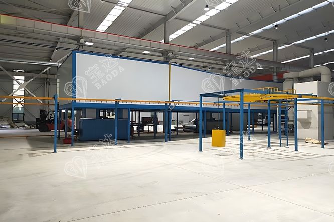 2. 前处理系统在线前处理,做到即处理即喷涂;瀑布均匀冲淋工件,型材表面处理均匀度高。