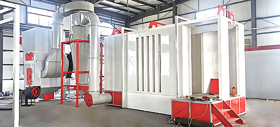 3. U型快速换色喷粉房换粉速度快,上粉效率高,自动卷帘幕布循环装置,实现快速的粉房清理。